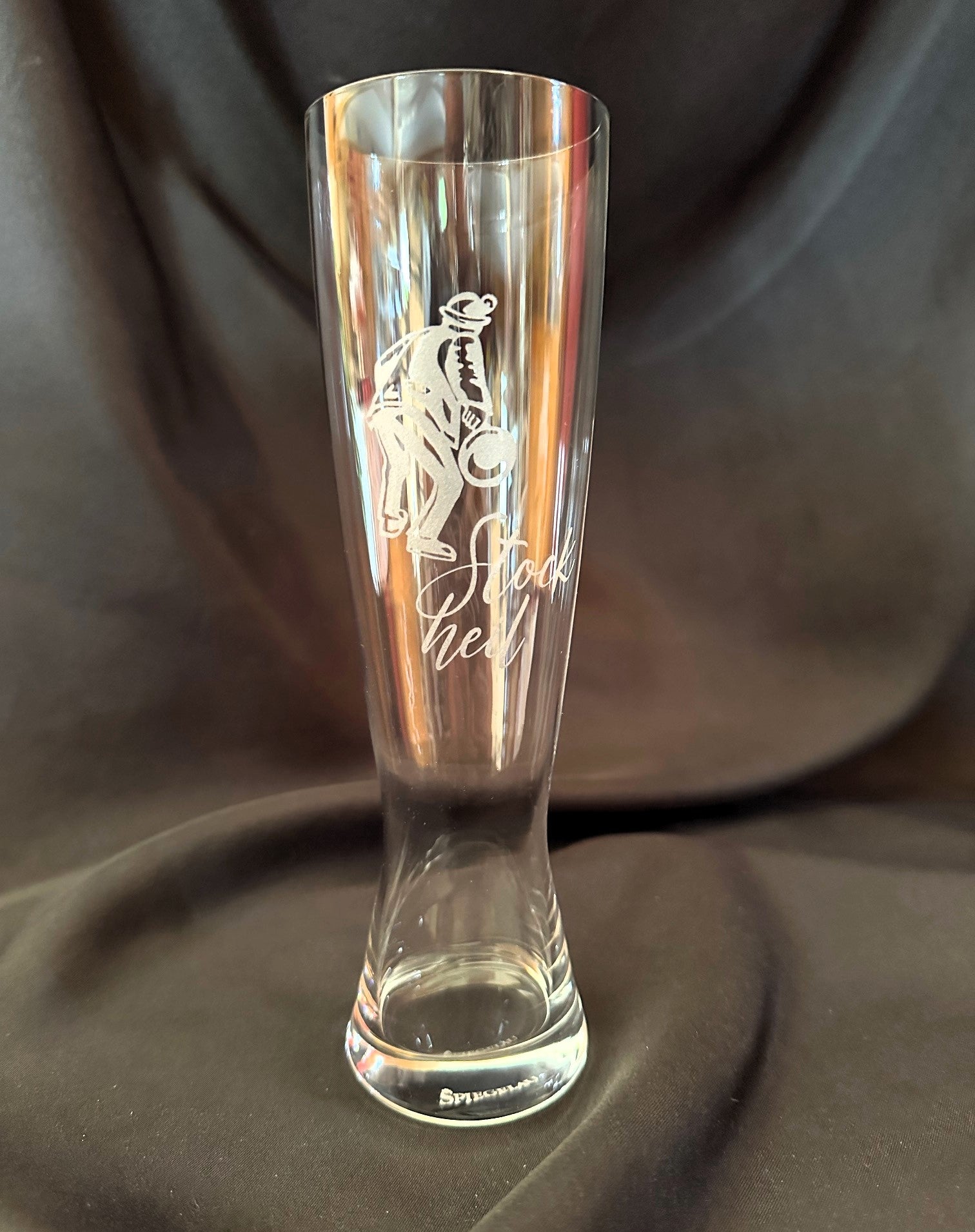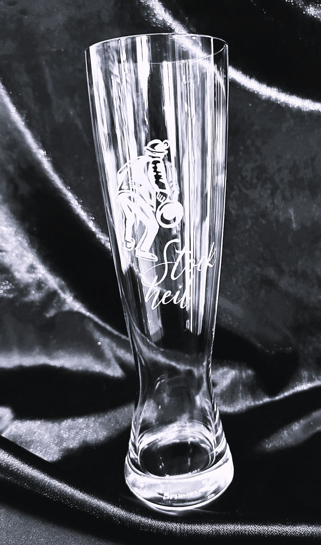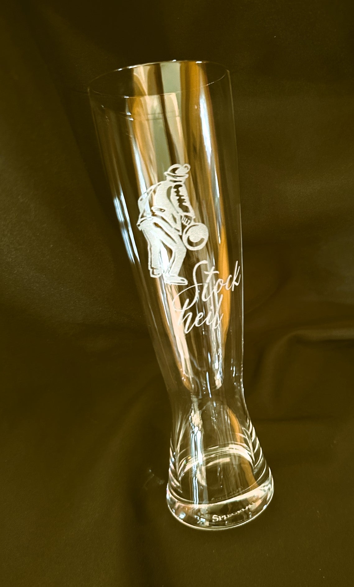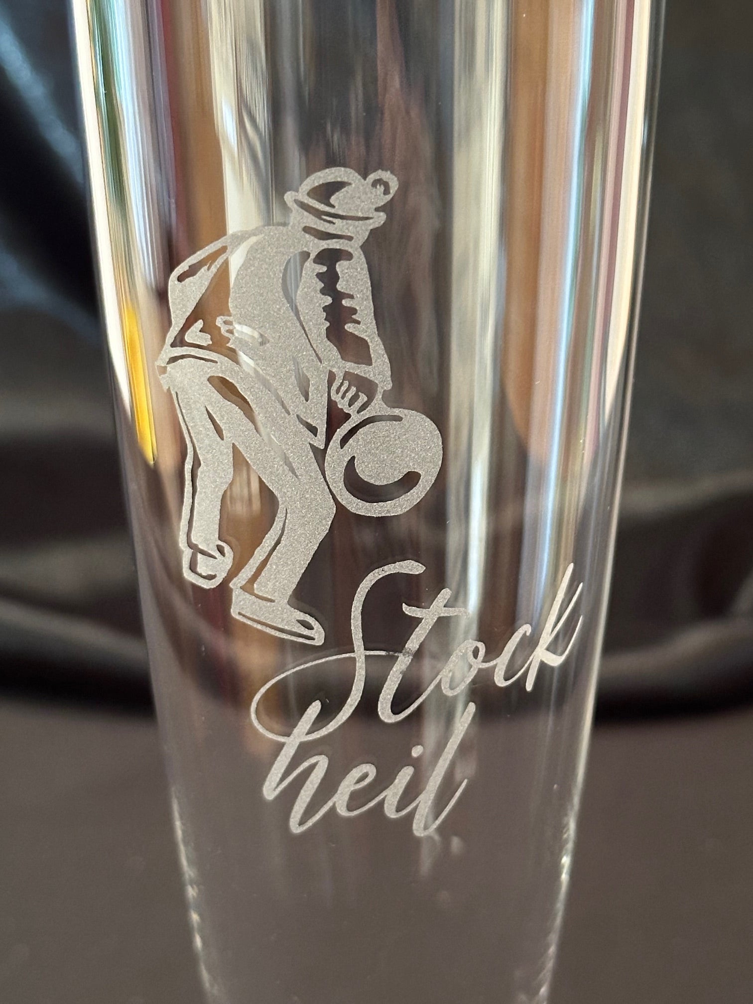 Genießen Sie Ihr Weißbier stilvoll mit unserem hochwertigen 0,33l Weißbierglas! Das Glas besticht durch seine elegante Sandgestrahlte Oberfläche, die für einen edlen Look sorgt. Der besondere Eyecatcher sind die Eisschützen, die dem Glas eine einzigartige Textur verleihen. Der Schriftzug „Stock heil“ macht das Glas zu einem echten Hingucker – perfekt für alle, die das Besondere suchen. Ob als Preis bei einem Stockturnier oder Geschenk, dieses Glas vereint Funktionalität und Design auf höchstem Niveau.