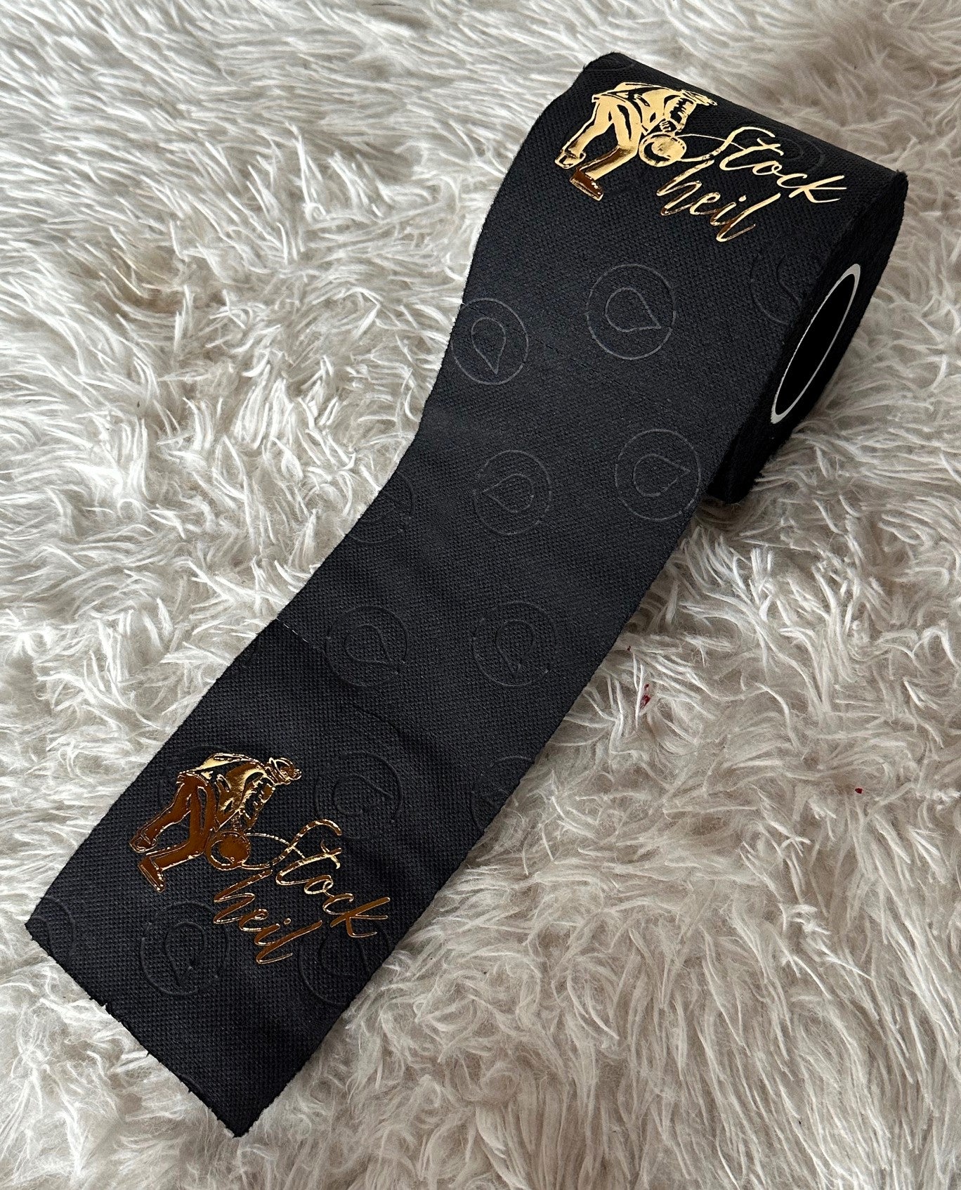 Schwarze WC-Rolle mit goldgeprägtem Eisschütz & „Stockheil“,