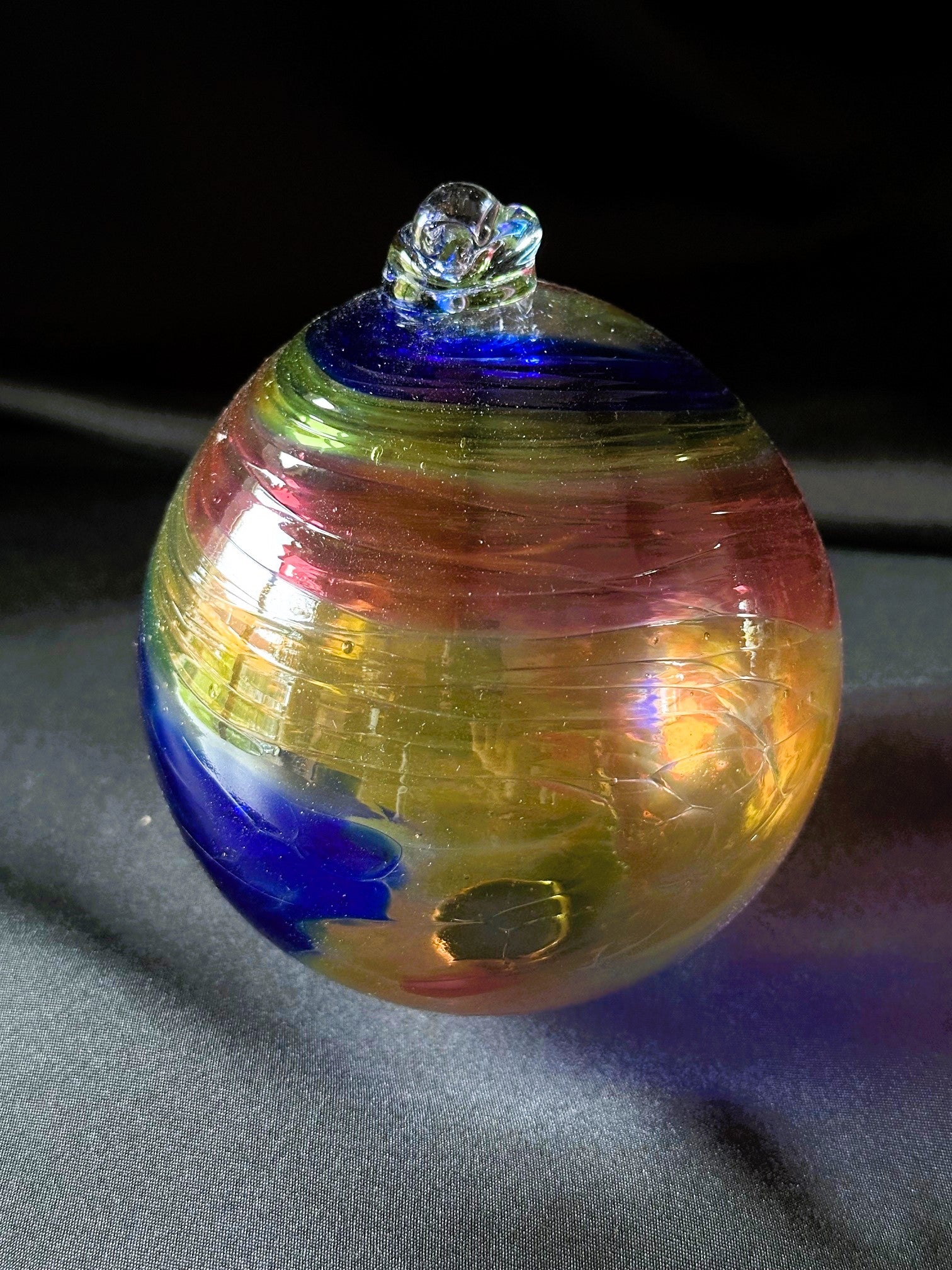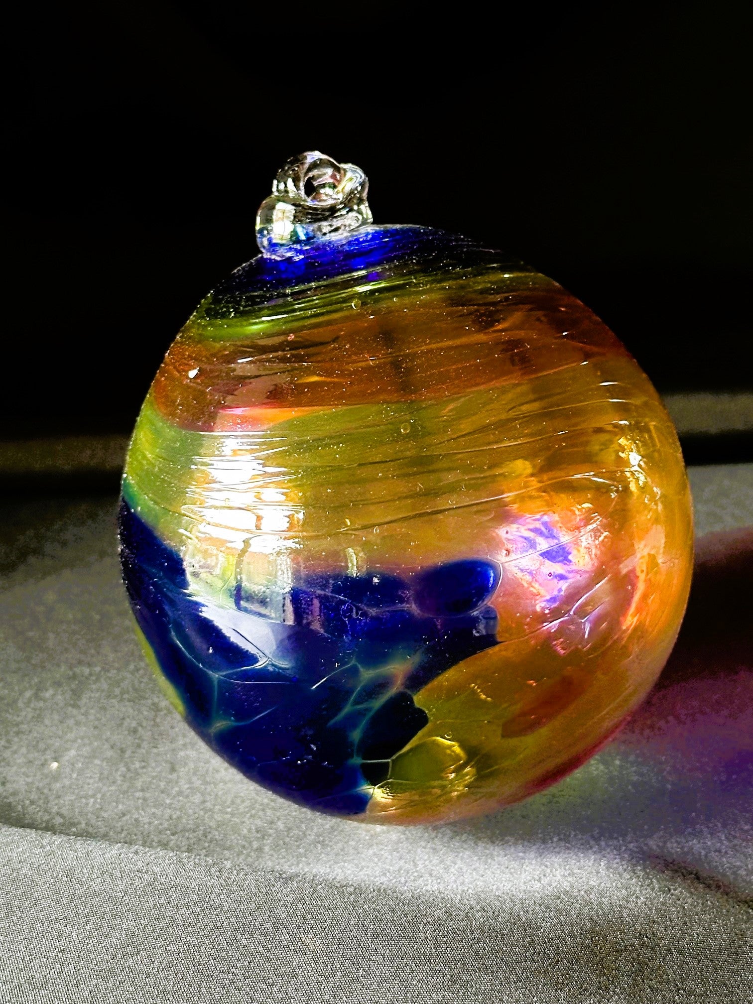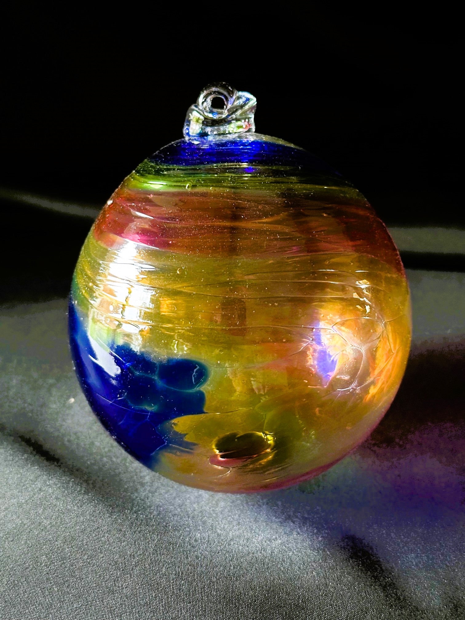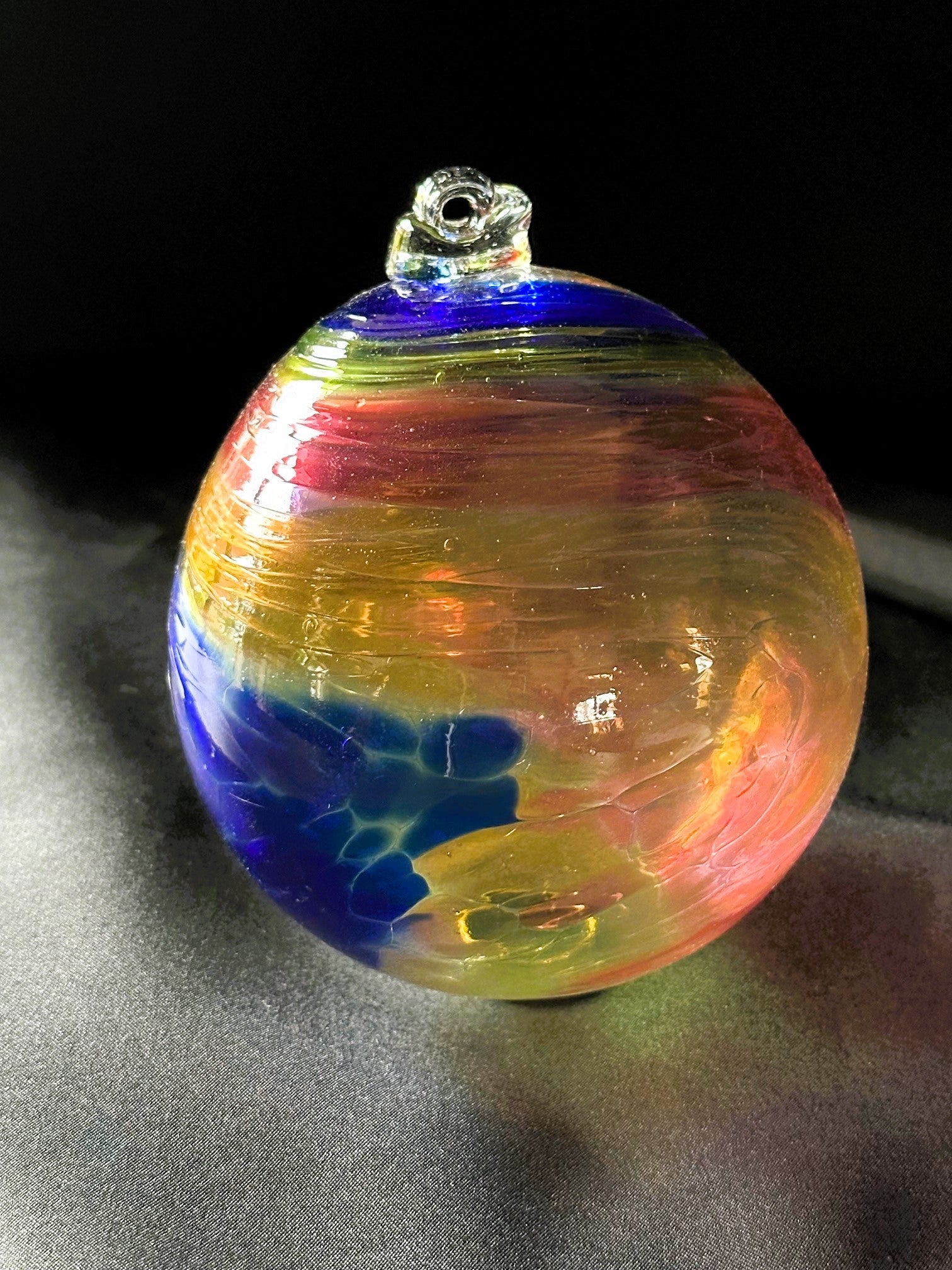 Mundgeblasene-Glaskugel - 3 farbiges Unikat mit Aufhängöse
